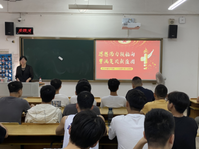 (文/中兴通讯信息学院刘渝图/中兴通讯信息学院刘渝)11月11日上午,公司党委委员、统战部部长曾浩武在主B教室宣讲中国共产党第二十次全国代表大会精神,中兴通讯信息学院50余师生参加此次宣讲会。