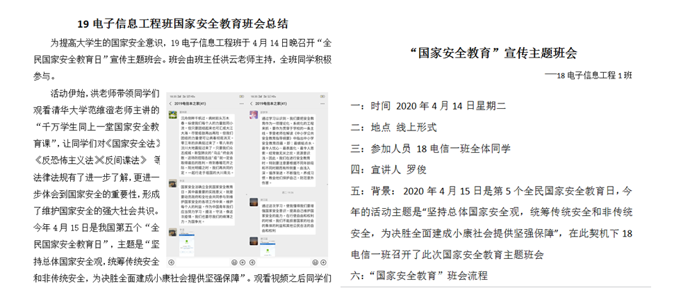 每年的4月15日为我国的全民国家安全教育日,今年在这个特殊的抗“疫”背景下,中兴通讯信息学院组织全体师生认真开展“同上一堂国家安全教育课”,组织员工错峰错时观看学习由教育部录制的“2020年全民国家安全教育日高校公开课”。今年的活动主题是“坚持总体国家安全观,统筹传统安全和非传统安全,为决胜全面建成小康社会提供坚强保障”。